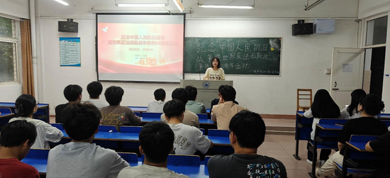 为进一步加强青少年爱国主义教育,引导青年学生铭记历史、缅怀先烈、珍爱和平,2025年9月3日,九江学院材料科学与工程学院学生齐聚竞知楼三楼教室举办了“纪念中国人民抗日战争暨世界反法西斯战争胜利80周年”主题团日活动。
